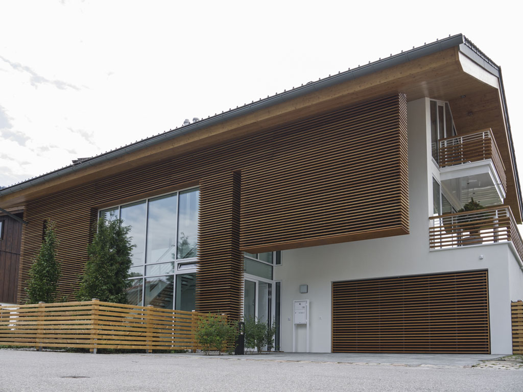 Hier zeigt die Zimmerei Maurer Ihr neues Gesicht... Insbesondere die moderne, aufwendig gestaltete Fassade erforderte viel handwerkliches Geschick und größtes Fingerspitzengefühl.Wir sind sehr stolz darauf,dass wir bei diesem anspruchsvollen und exklusiven Neubau die Zimmermannsarbeiten ausführen durften.