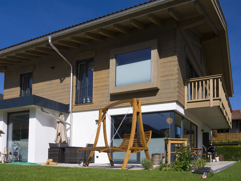 Hier darf sich eine Familie über Ihren neuen Familienrückzugsort freuen. Das neue Zuhause wurde unten gemauert und oben mit der Werdenfelser Holzwand aufgebaut. Besonders reizvoll zu sehen, eine Blockwandverschalung im modernen Stil.